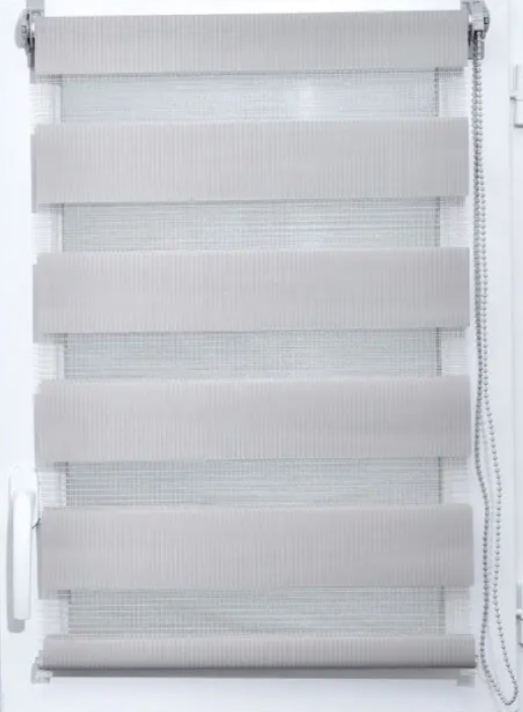 - Rolo zavesa Zebra u svetlo sivoj boji. Ova roletna će vam omogućiti da svetlost koja ulazi u vaš prostor bude diskretnija.