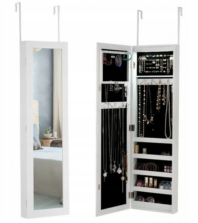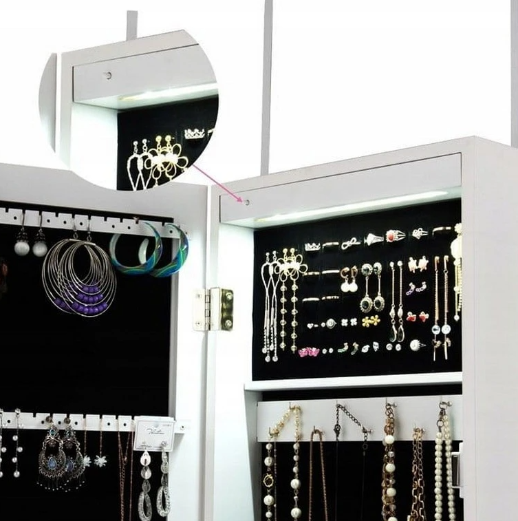 - Veliki prostor za skladištenje - orman ima 2 reda kukica dizajniranih za odlaganje minđuša, imenski prostor za 50 prstenova, 16 kukica za ogrlice i narukvice i 5 policajaca.
