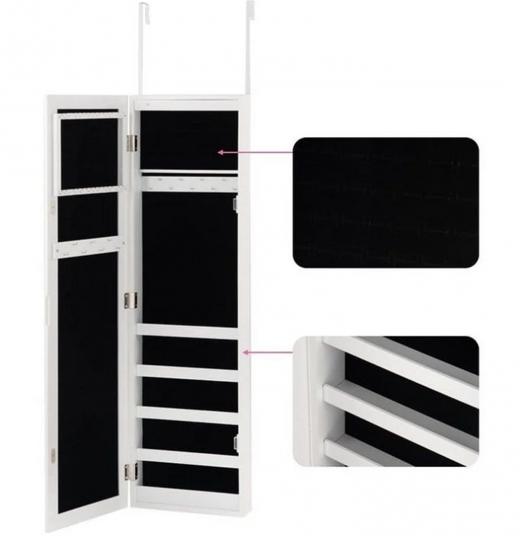 - Visokokvalitetni materijali - orman je izrađen od visokokvalitetnih MDF ploča, što garantuje snagu, stabilnost i izdržljivost bez premca. Ogledalo u punoj dužini pruža vam jasan pogled, a crna somotna podstava štiti vaš nakit od grebotina, grebotina i oksidacije