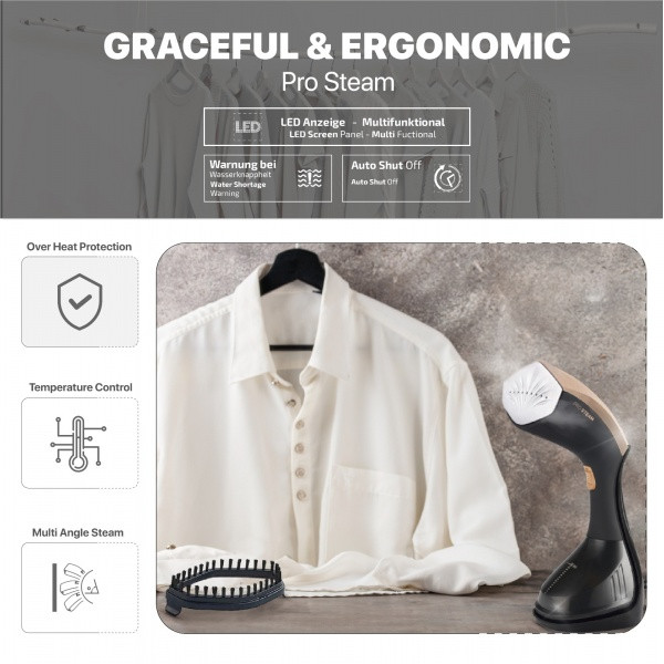 Vertikalni uređaj ima snagu od 1600W, nudi toplu paru velike snage od 25 g/min. Jednostavan je za rukovanje, efikasan je i pogodan za svakodnevnu upotrebu.